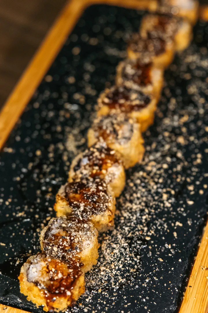Entre os campeões 👑 de venda, este sushi roll é composto por 10 peças emapanadas na farinha panko, em seguidas são fritas para causar o melhor efeito krek krek em todas as mordidas. Compostas por: