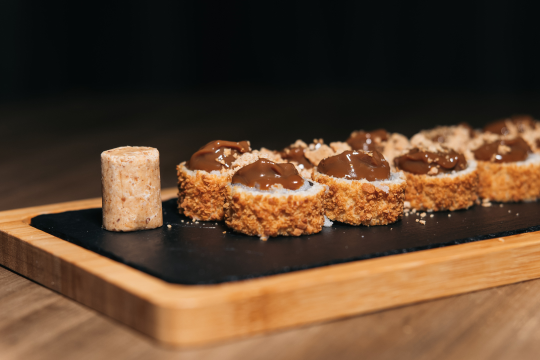 Trata-se de um roll de arroz empanado em farinha Panko, coberto por uma generosa camada de Doce de Leite e finalizado com uma crocante farofa de paçoca. Peça agora mesmo! Acompanha 2 hashi e 2 sachês de shoyu sem custo adicional!