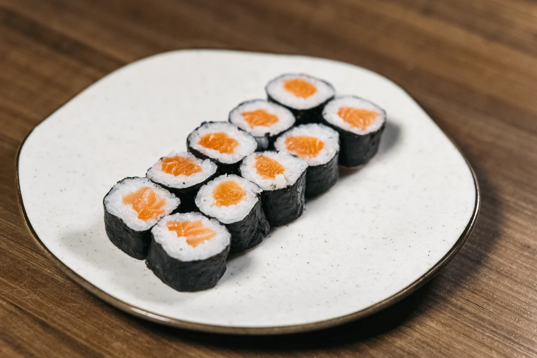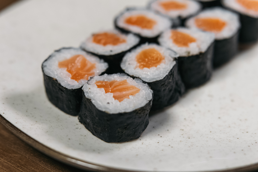 Enrolados com a nossa alga premium por fora, recheado com salmão frescos e arroz premium cozido na medida certa.